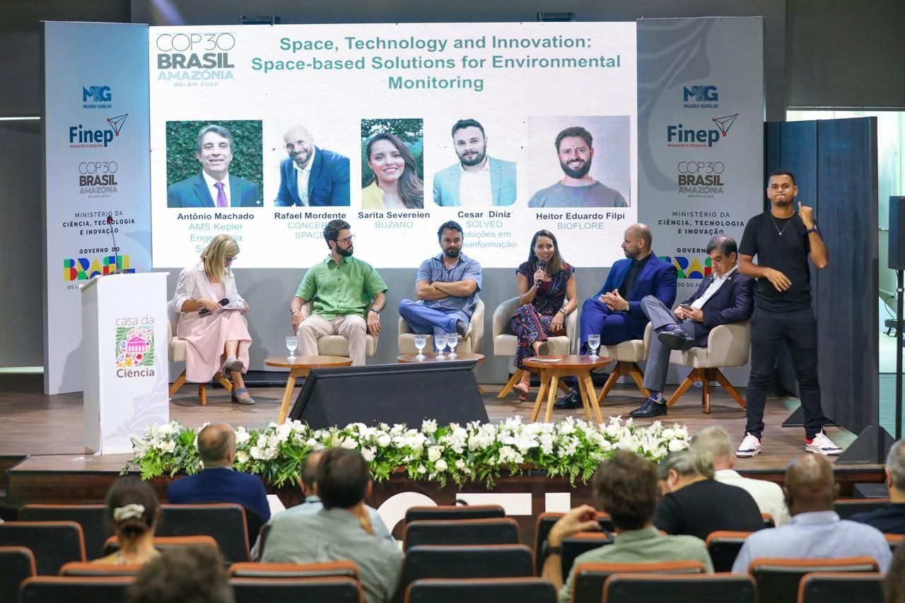Eventos climáticos extremos se tornaram mais frequentes e mais impactantes em termos sociais e econômicos. Enchentes, secas prolongadas e queimadas em larga escala afetam cidades, infraestrutura e biomas em todo o país. Nesse cenário, o monitoramento climático com base em dados confiáveis passou a ocupar papel central na gestão de risco. A COP30, realizada no Brasil, refletiu essa urgência ao destacar o tema em diversos painéis. A Concert Space participou dessa agenda com a presença de Rafael Mordente, CEO da empresa, no painel “Space, Technology and Innovation: Space-Based Solutions for Environmental Monitoring” (Espaço, Tecnologia e Inovação: Soluções Baseadas no Espaço para o Monitoramento Ambiental), dedicado ao uso de dados de satélite e soluções digitais para acompanhar florestas, carbono, água e mudanças no uso do solo. MLBR, YaraTracker, Imagery e ATTOsat integram esse esforço, com propostas que ampliam a capacidade de observar o clima e o uso do território a partir do espaço. O papel do monitoramento climático e do sensoriamento remoto Monitoramento climático é o acompanhamento contínuo de variáveis ambientais — como temperatura, índices de chuva, concentração de gases e uso do solo — para entender tendências e eventos extremos do clima. Essa prática ganha urgência diante das mudanças climáticas: eventos meteorológicos severos tornaram-se mais frequentes e intensos. Em 2024 , o Brasil registrou 10 eventos climáticos extremos , segundo relatório da Organização Meteorológica Mundial (OMM) , dos quais três foram considerados sem precedentes: chuvas no Rio Grande do Sul, seca na Amazônia e onda de calor no centro do país. Do mesmo modo, queimadas recordes refletem esse novo normal: mais de 30 milhões de hectares foram queimados no país em 2024 , um salto de 79% em relação a 2023, segundo a MapBiomas . Esse aumento abrangeu especialmente a Amazônia, que sozinha respondeu por cerca de 17,9 milhões de hectares queimados. Nesse sentido, o conceito de sensoriamento remoto Trata-se da coleta de informações da Terra por sensores a distância – típicamente embarcados em satélites, drones ou aeronaves – para observar o planeta sem contato direto. O resultado são dados multiespectrais valiosos: por exemplo, imagens de satélite no infravermelho revelam a saúde da vegetação pelo vigor da cor verde, enquanto dados de radar mapeiam alagamentos mesmo com cobertura de nuvens. Assim, o sensoriamento remoto permite monitorar vastas regiões de forma contínua e precisa, algo impraticável apenas com inspeções em solo. As aplicações são diversas e convergentes com as demandas do clima: vai desde acompanhar o desmatamento em grande escala até avaliar riscos de desastre natural em áreas propensas a deslizamentos, inundações ou secas. Também viabiliza rastrear parâmetros planetários, como temperaturas de superfície, níveis de CO₂ atmosférico, extensão de calotas polares e padrões de chuva – dados essenciais para embasar políticas de mitigação e adaptação às mudanças climáticas.